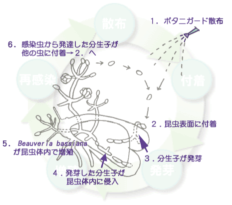 作用5:Beauveria bassiana が昆虫体内で増殖。